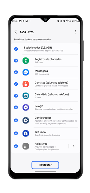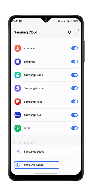 Para restaurar os dados de saúde que foram armazenados no app Samsung Health, siga os passos a seguir: