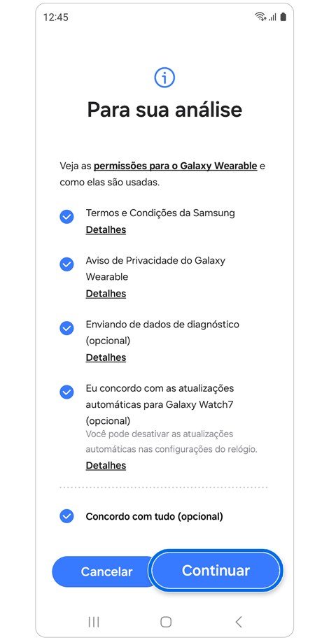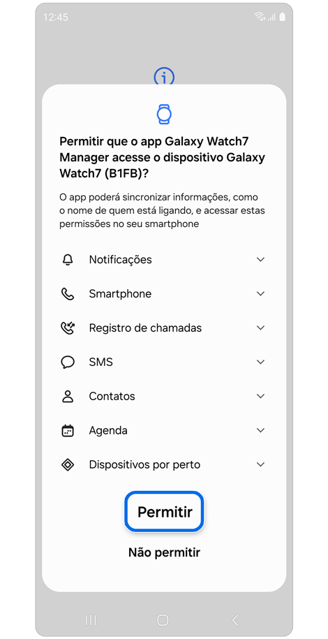 Observação: Certifique-se de que o Bluetooth está ativado no seu telefone Galaxy para que ele possa detectar dispositivos vestíveis próximos, incluindo seu Galaxy Watch.