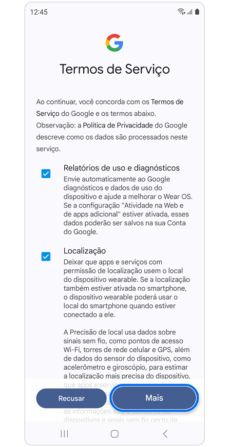 Antes de conectar seu Galaxy Watch a um novo telefone, certifique-se de fazer backup dos dados do seu Galaxy Watch em um lugar seguro.