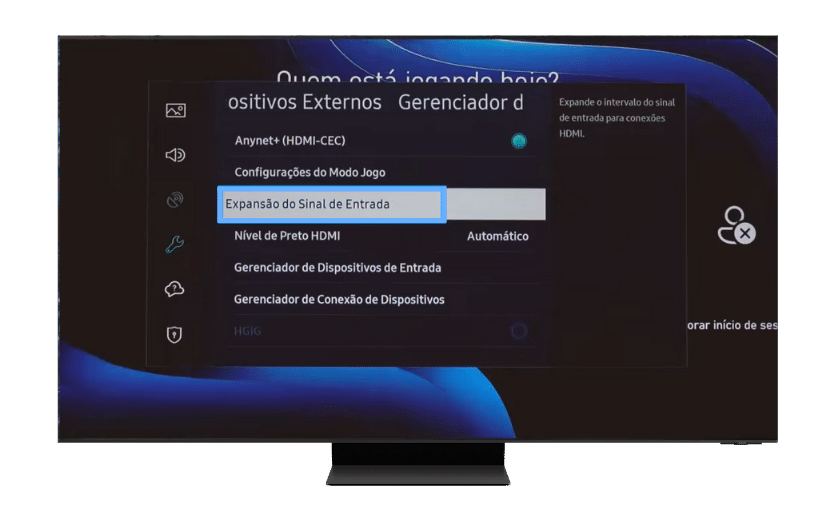 Para jogar em 4K, confirme se a configuração Expansão do sinal de entrada, está ativado. Para isso, acesse as Configurações;