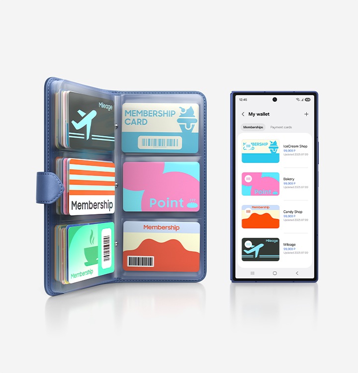 Upgrade to a digital wallet for a faster, safer and easier everyday routine. Samsung Wallet lets you organize all your essentials into a single app — from important credentials like credit cards, membership cards and passwords to on-the-go items like house keys, car keys, coupons and boarding passes. No need to carry around a million different belongings or worry about leaving anything behind. And you can secure it all behind a PIN number or personal biometric data, so only you can access it. 1