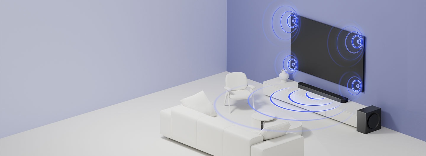 Did you know that your TV speakers turn off when you connect it to a regular soundbar? In contrast, Samsung soundbars with Q-Symphony¹ keep both the soundbar and the Samsung TV speakers active. Instead of disabling the built-in Samsung TV speakers, the audio from your content is intelligently optimized to play from both devices harmoniously, resulting in an impactful and immersive surround sound experience.