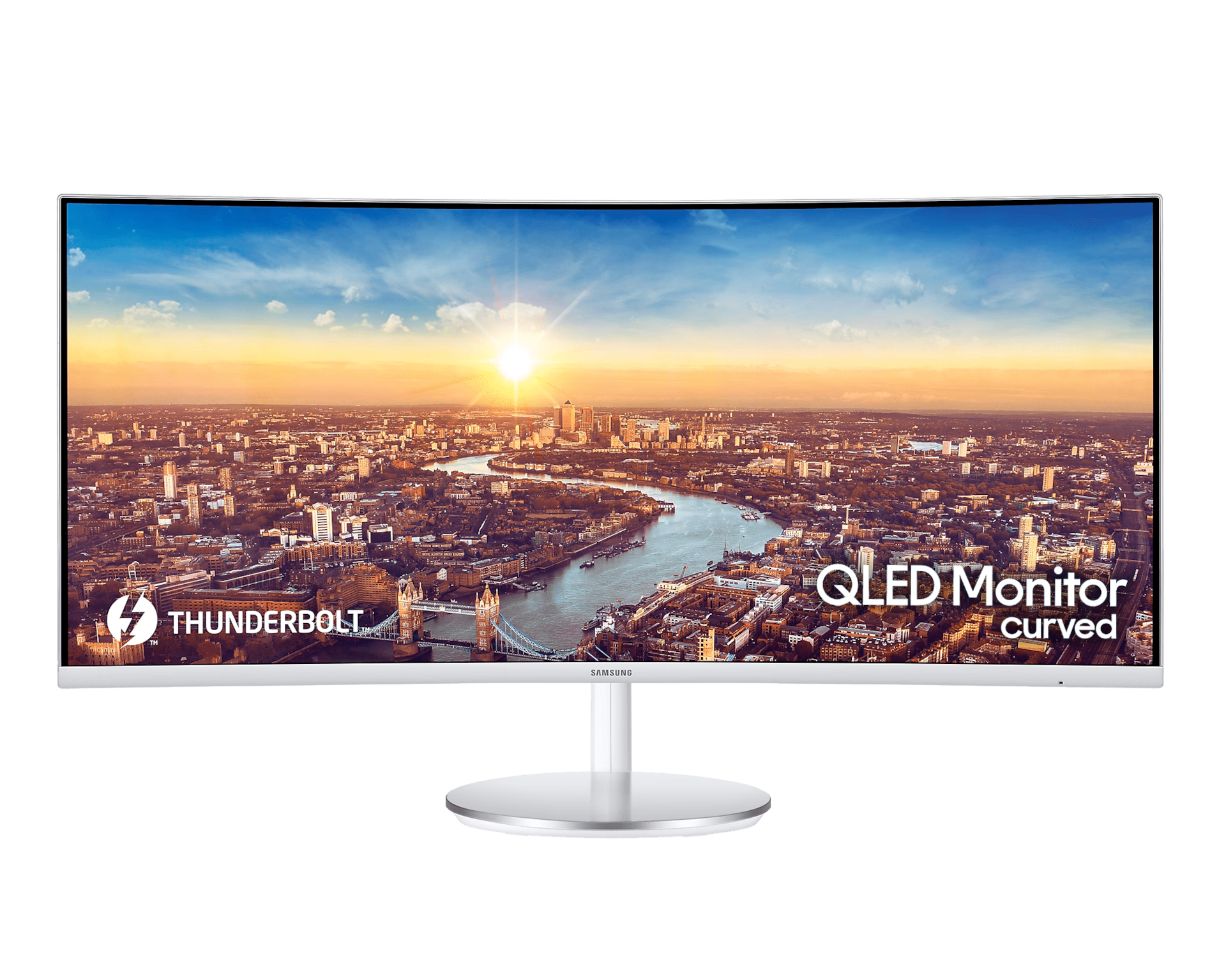 With its curved screen bezeless on three sides for enhanced viewing and its rear panel — finished in glossy white and curving horizontally and vertically — neatly concealing cables, the CJ79’s slim and striking profile is the great complement to Thunderbolt 3 Mac or PC.