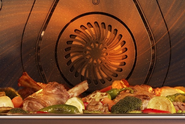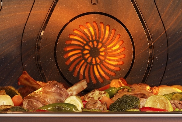 A Samsung convection oven uses a fan to circulate hot air all around. This helps make for great heat distribution all around your food. This helps cook food faster and more even than traditional ovens. Circulating heat is great for roasting, browning, and crisping.