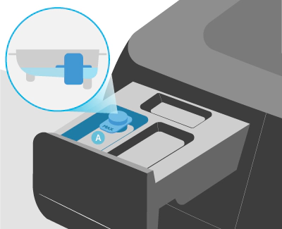 - If you're using liquid detergent, ensure that the Liquid Detergent Tray is positioned within the drawer (A), and then pour in the recommended amount of detergent as indicated by the manufacturer.