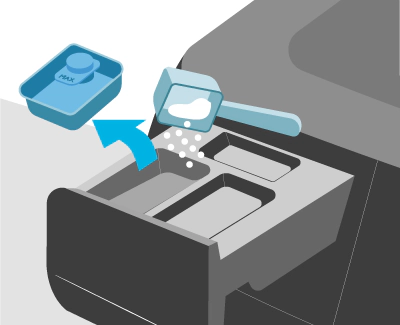- In the case of powdered detergent, ensure the Liquid Detergent Tray is removed and then directly pour the detergent manufacturer's suggested quantity into the Detergent drawer.