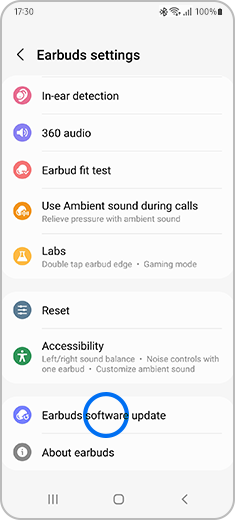 Please note: Depending on the model, network, and version information you are using the ‘Earbuds software update’ menu may not appear.