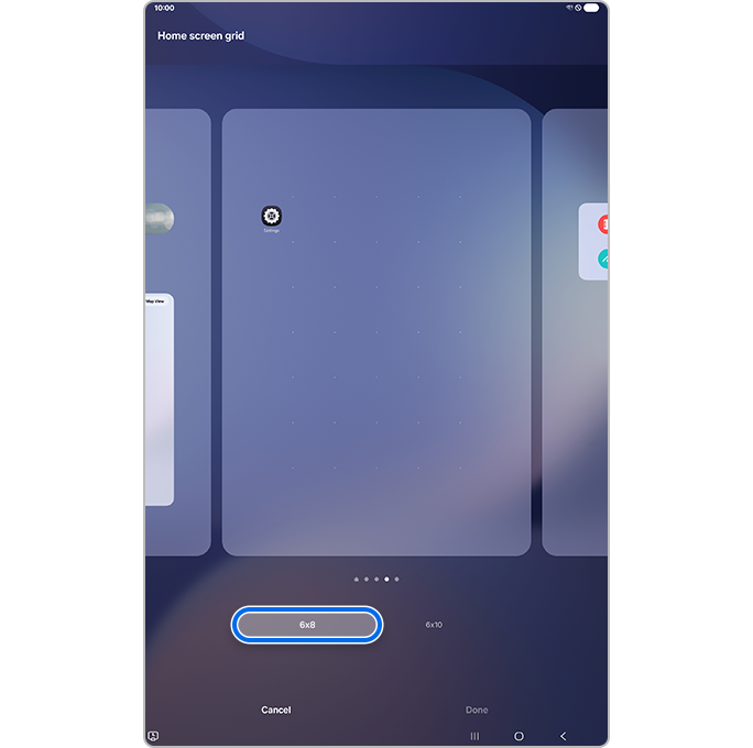 The Home screen on your Galaxy tablet is where apps, widgets, and shortcuts are organized. It uses a grid layout to determine how many items fit per row and column.
