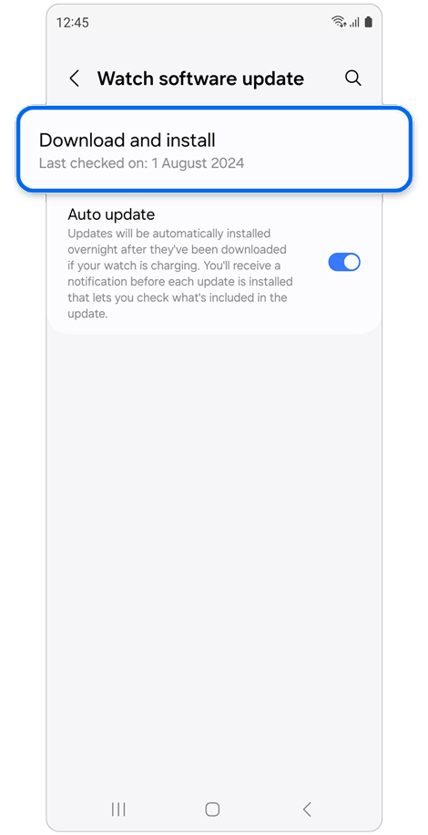 While your phone and watch are connected, you can use the Galaxy Wearable app to regularly check for available updates.