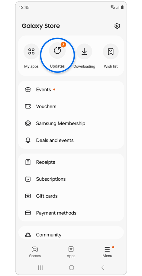 The Galaxy Store can be used to update your watch’s apps. You can update the watch's apps using the connected phone, or on the watch itself. Make sure your phone and watch are connected and the device you're using is connected to Wi-Fi or mobile data.