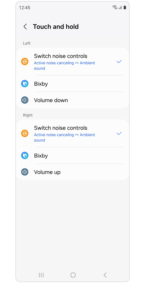 When you connect Galaxy Buds to the Galaxy Wearable app on your phone or tablet, you will be able to customise some touchpad commands for each earbud.