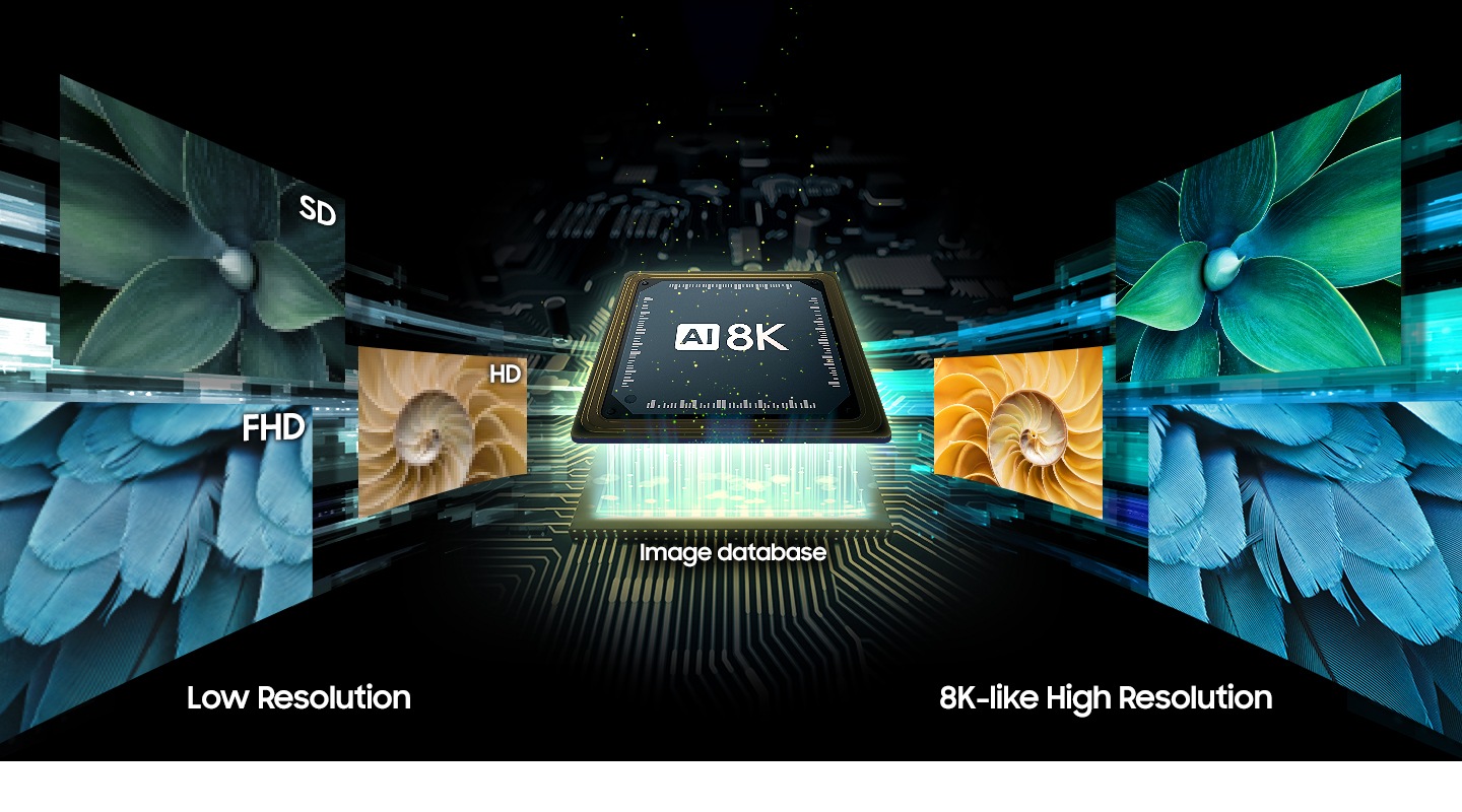 In 2019, Samsung introduced our 8K TV with its own specialized 8K AI Upscaling technology. The AI Upscaling technology uses a method that collects and learns a wide variety of content characteristics by type and then stores them in a database. It later uses that database to process similar image types again, making for a much more sophisticated upscaling process.
