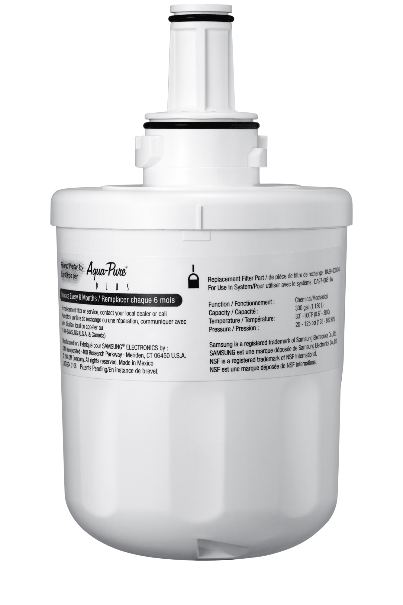 Achetez uniquement des cartouches de filtre à eau Samsung authentiques pour assurer un bon rendement. Méfiez-vous des imitations et des produits d'autres marques qui sont offerts à meilleur prix et sont soi-disant compatibles avec les filtres Samsung. Seuls les filtres Samsung authentiques assurent une excellente compatibilité avec votre réfrigérateur Samsung.