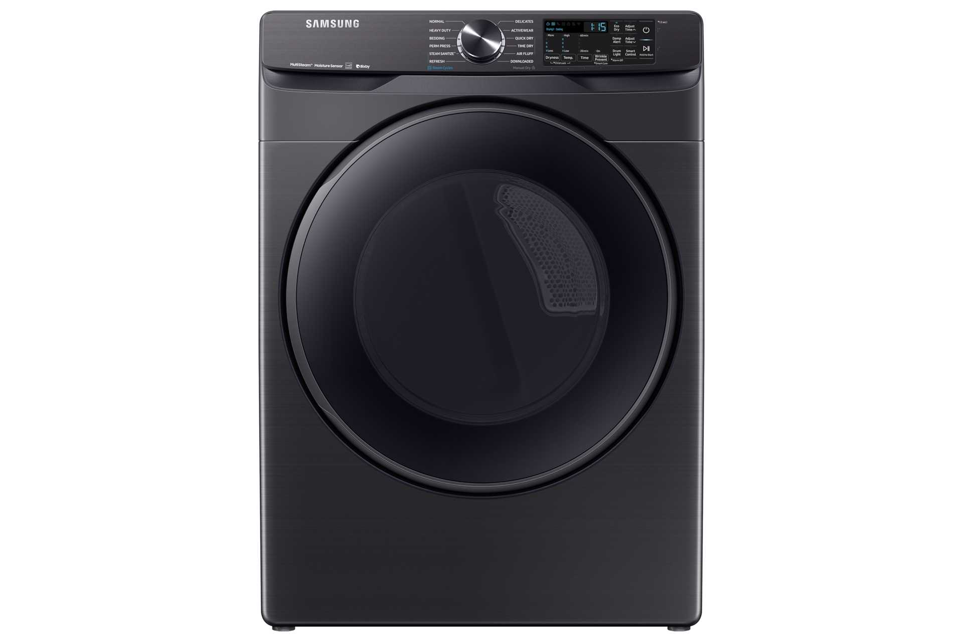 Sécheuse électrique intelligente en acier inoxydable noir de 7,5 pi³ avec assainissement à la vapeur