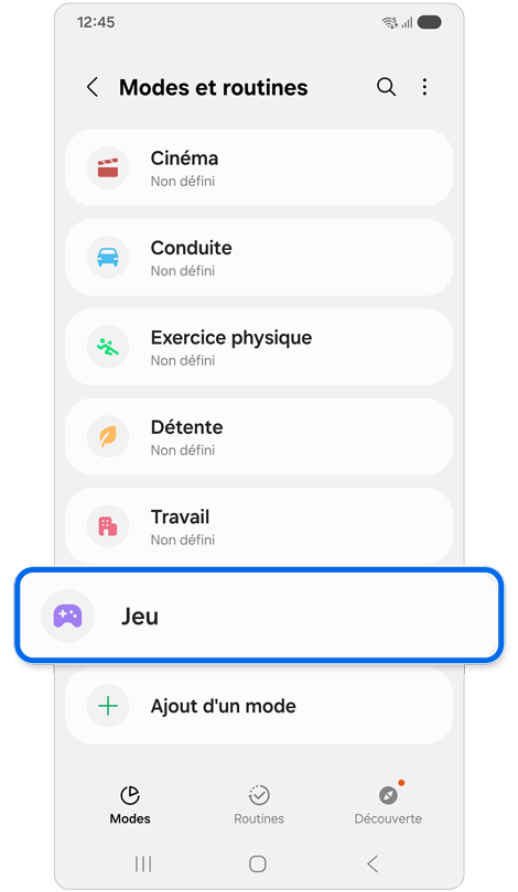 Grâce aux fonctions offertes par « Modes et routines », vous pouvez désormais configurer le mode Jeu pour couper le son des appels et des notifications pendant vos sessions de jeu, une fonctionnalité autrefois gérée par le mode Priorité de Game Booster. La création d’un mode Jeu spécifique vous offre une multitude d’options de configuration, dont le mode Ne pas déranger, pour une immersion totale sans interruptions.