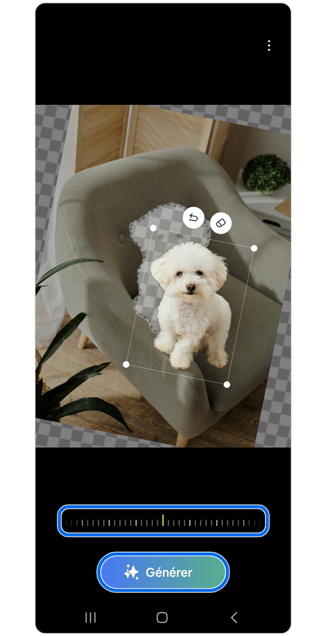 Vous pouvez supprimer, déplacer, ou redimensionner l'objet créé simplement en appuyant longuement dessus, grâce à la fonction de modification générative. L'intelligence artificielle ajustera alors automatiquement l'objet et son arrière-plan pour qu'ils s'harmonisent parfaitement avec la photo originale.