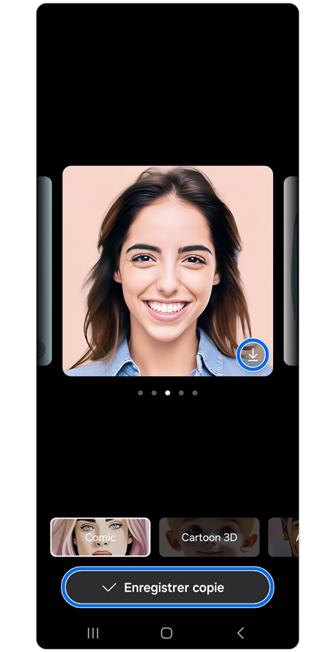 - Vos dessins sont envoyés à un serveur pour être transformés en images. Les données transmises sont utilisées uniquement pour cette fonctionnalité et ne sont pas stockées par Samsung.