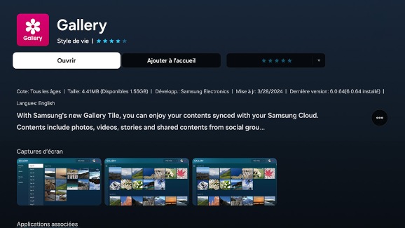 Remarque : Avant de sélectionner Ouvrir, pensez à choisir Ajouter à l’accueil. L’application sera ainsi placée sur l’écran d’accueil du Smart Hub, ce qui facilitera son accès par la suite.