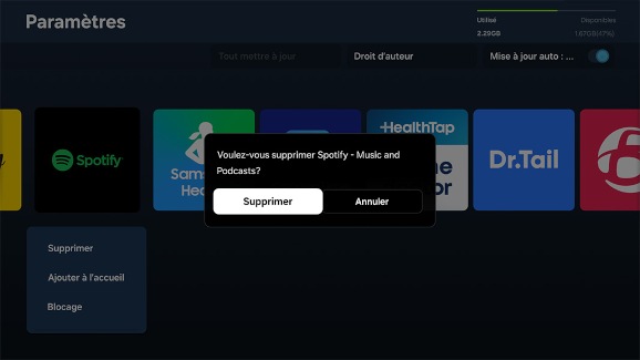 Vous pouvez supprimer des applications de votre téléviseur Samsung pour libérer de l’espace ou simplement retirer celles que vous n’utilisez plus.