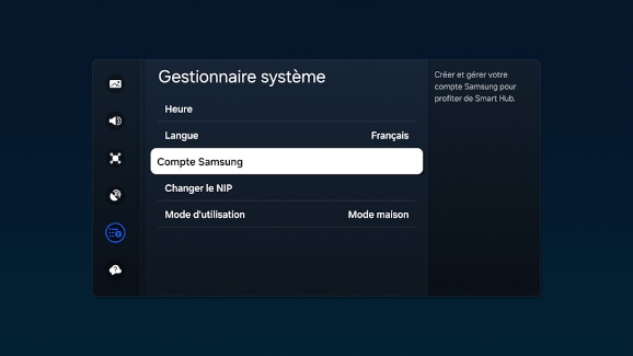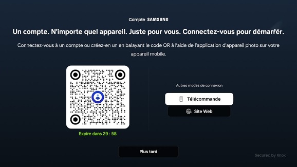 Si vous ne possédez pas encore de compte Samsung, vous pouvez en créer un à partir de votre téléphone, tablette ou ordinateur. Une fois cette étape terminée, la connexion sur votre téléviseur intelligent Samsung est simple et rapide :