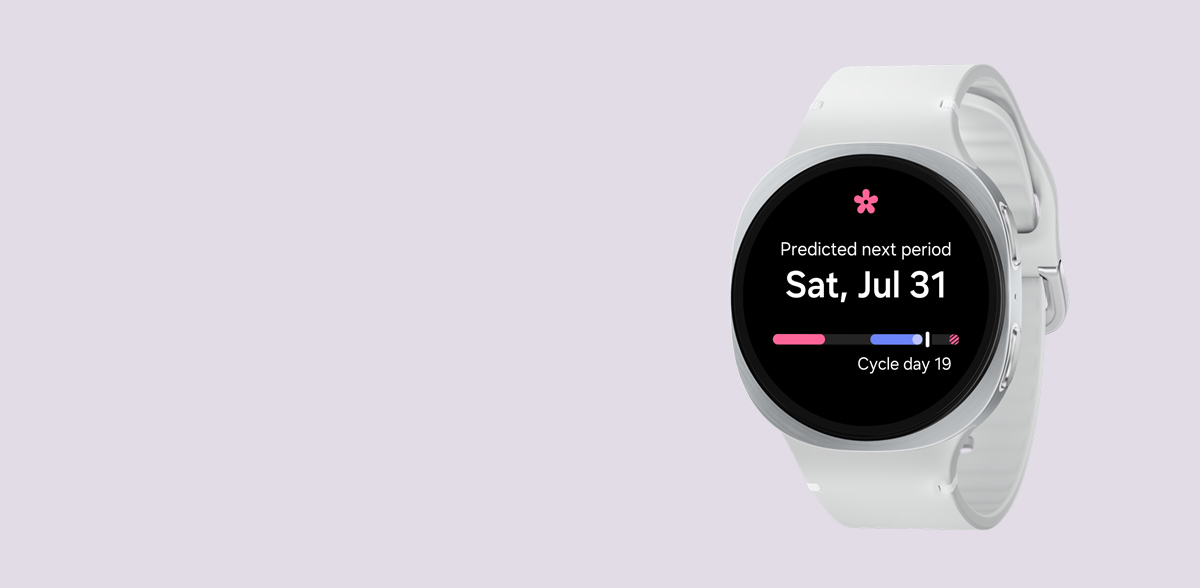 - Le suivi du cycle est disponible pour la prédiction du cycle et des règles, optimisé par Natural Cycles. Le suivi du cycle basé sur la température de la peau fonctionne sur les montres et les téléphones achetés dans les pays où le service est actuellement disponible. NON DESTINÉ À LA CONTRACEPTION. Si vous prenez actuellement une contraception hormonale ou si vous suivez un traitement hormonal qui inhibe l’ovulation, ce service ne sera pas utile pour suivre l’ovulation. Les prédictions affichées sont à titre de référence personnelle uniquement. Pour améliorer la précision des prédictions, il est recommandé de porter votre Galaxy Watch pendant au moins 4 heures pendant le sommeil, 5 fois par semaine. Les prédictions peuvent varier en fonction de l’utilisation adéquate de votre montre, des données d’entrée, des conditions environnementales, etc. Destiné aux utilisateurs âgés de 18 ans ou plus. Les utilisateurs ne doivent pas interpréter ou prendre des mesures cliniques basées sur les prédictions sans consulter un professionnel de santé qualifié.