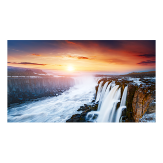 Der ausgesprochen dünne Rahmen mit nur 0,44 mm – also 0,88 mm von Rahmen zu Rahmen – erlaubt es dem Display, ein einziges nahezu nahtloses Bild anzuzeigen. Zusätzlich reduziert das Display mögliche Bildverzerrungen und zieht Zuschauer mit immersiven Bildeindrücken in den Bann.