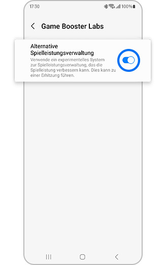 Hinweis: Die Aktivierung der Spielleistungsverwaltung kann bei laufendem Spiel die Wärmeentwicklung oder den Akkuverbrauch erhöhen.