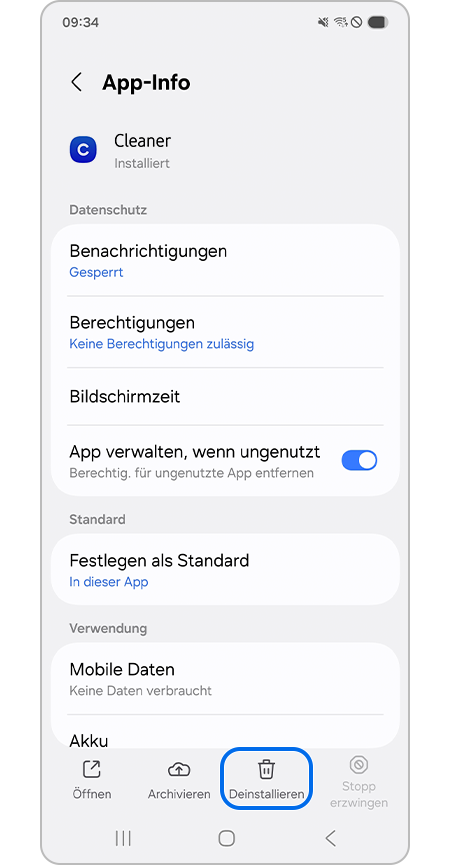 - Bei der App „Cleaner“ handelt es sich um ein fiktives Beispiel, das zu Illustrationszwecken erstellt wurde und keine reale oder existierende Anwendung darstellt.