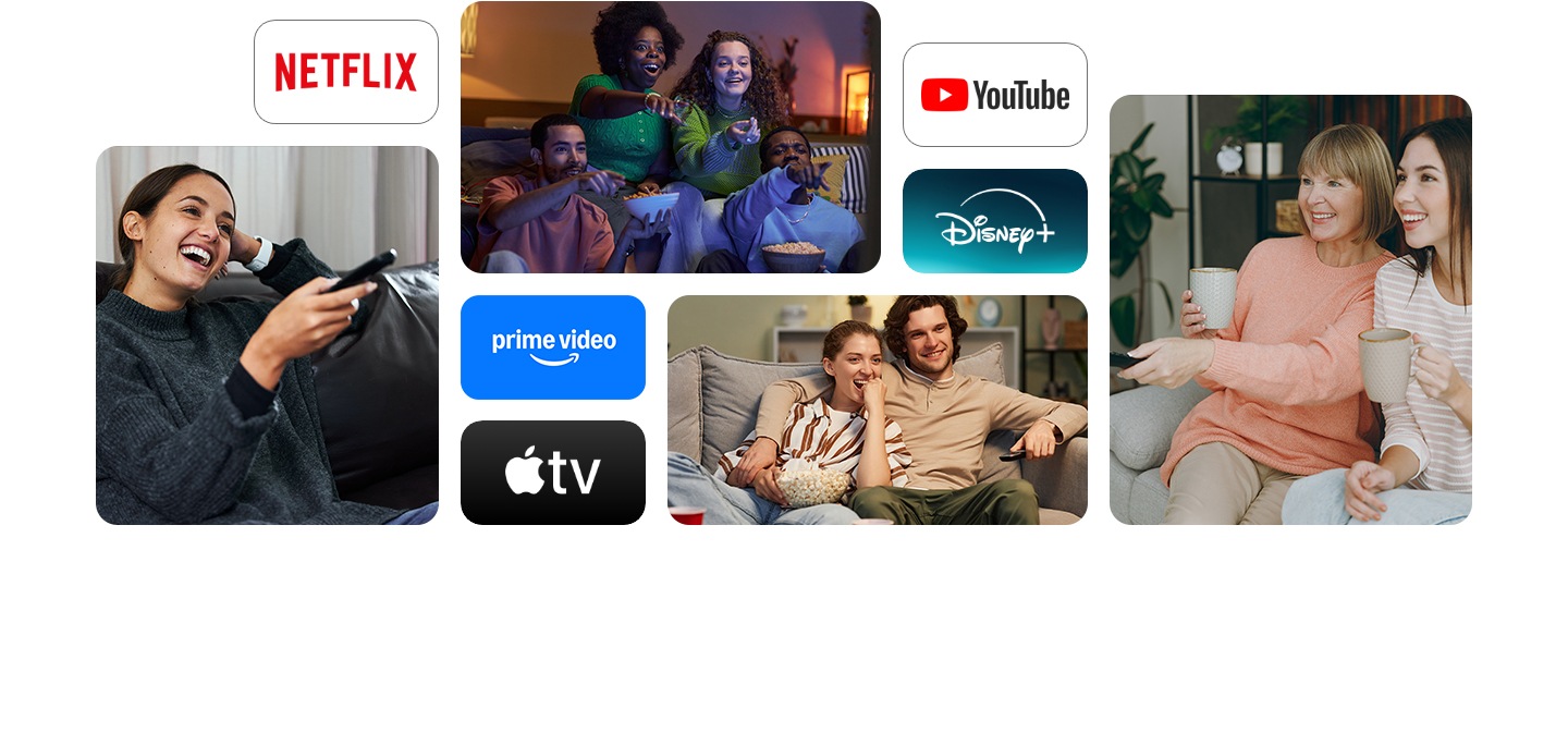 Samsung Smart TVs verfügen über die beliebtesten Streaming-Apps5 wie Netflix und YouTube. Schalte einfach deinen neuen Fernseher ein und tauche direkt in deine Lieblingsinhalte ein.