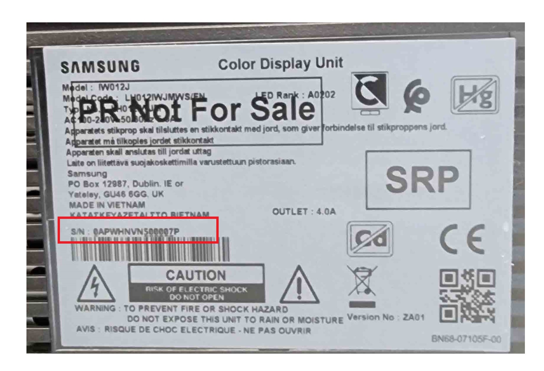 Le numéro de série est composé de 25 chiffres et peut être scanné le plus facilement à partir de l'étiquette à l'aide d'un scanner de codes-barres (ou d'une application de scannage de codes-barres). Chaque cabinet a son propre numéro de série.