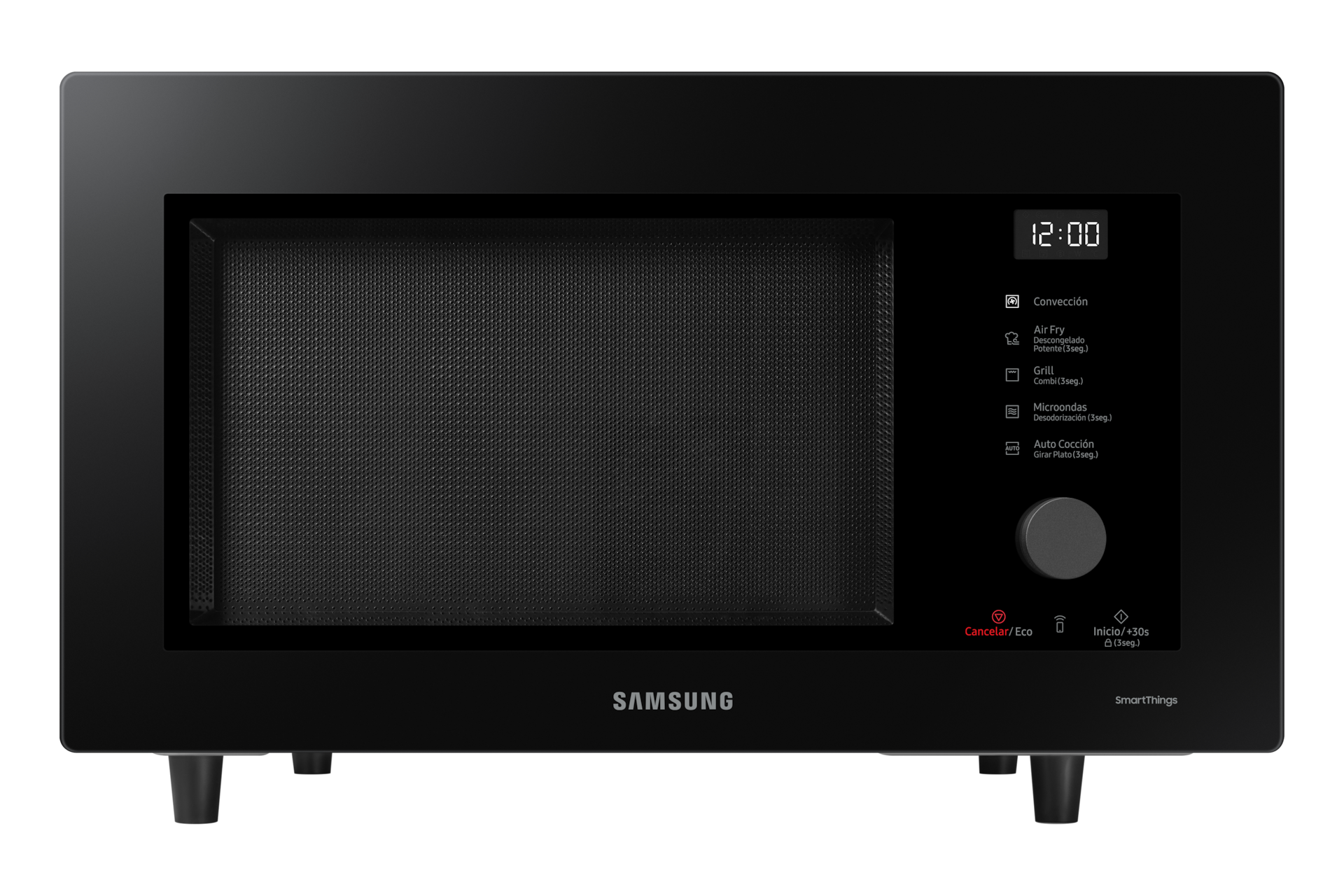 * Se requiere una conexión Wi-Fi.** Bixby es el asistente de voz de la marca Samsung de inteligencia artificial (IA) / Internet de las Cosas (IoT). La disponibilidad del servicio Bixby puede variar según el país. Bixby reconoce determinados acentos/dialectos del inglés (estadounidense, británico, indio), chino, coreano, francés, alemán, italiano, español y portugués. Se requiere el inicio de sesión en una cuenta Samsung y una conexión Wi-Fi.*** Amazon, Alexa y todos los logotipos relacionados son marcas comerciales de Amazon.Com, Inc. o sus filiales.**** Google es una marca comercial de Google LLC.***** Solo disponible cuando el botón Smart Control del horno microondas se enciende con las manos.****** Disponible en dispositivos Android e iOS. Se requiere una conexión Wi-Fi y una cuenta Samsung.