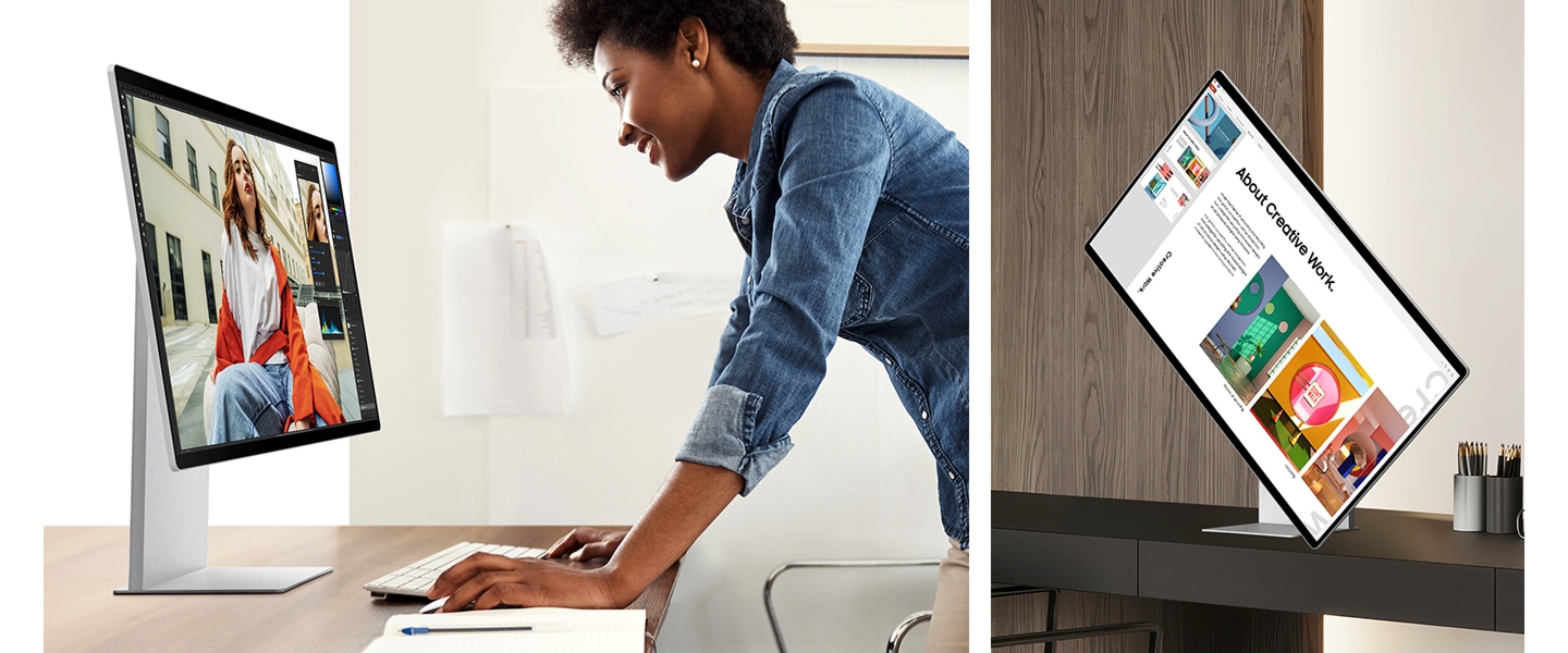 Mantén la comodidad y productividad al máximo. La pantalla de altura ajustable del Smart Monitor con función de inclinación te ayuda a mantener una mejor postura y mantener el enfoque. Además, la función de pivote de 90 grados facilita la visualización de documentos largos con menos desplazamiento. 12