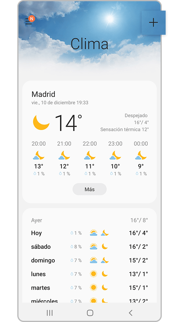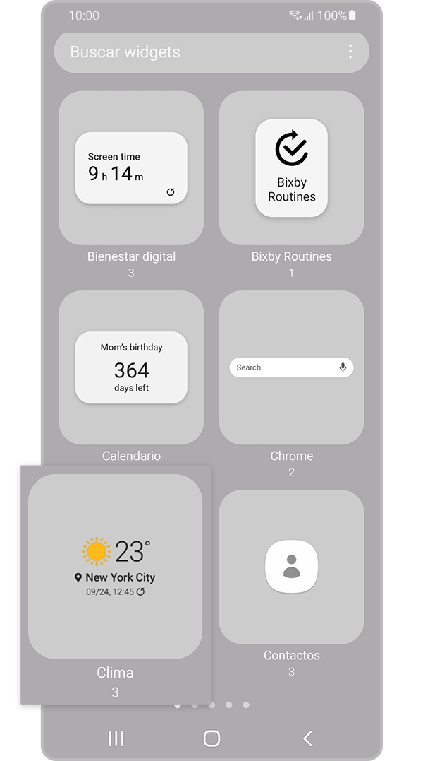 La mayoría de los dispositivos Galaxy tienen un widget del tiempo que puedes usar en tu pantalla de inicio. Sin embargo, si este widget no está en tu pantalla de inicio o si lo quitaste accidentalmente, puedes agregarlo siguiendo los pasos a continuación.