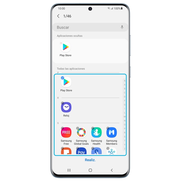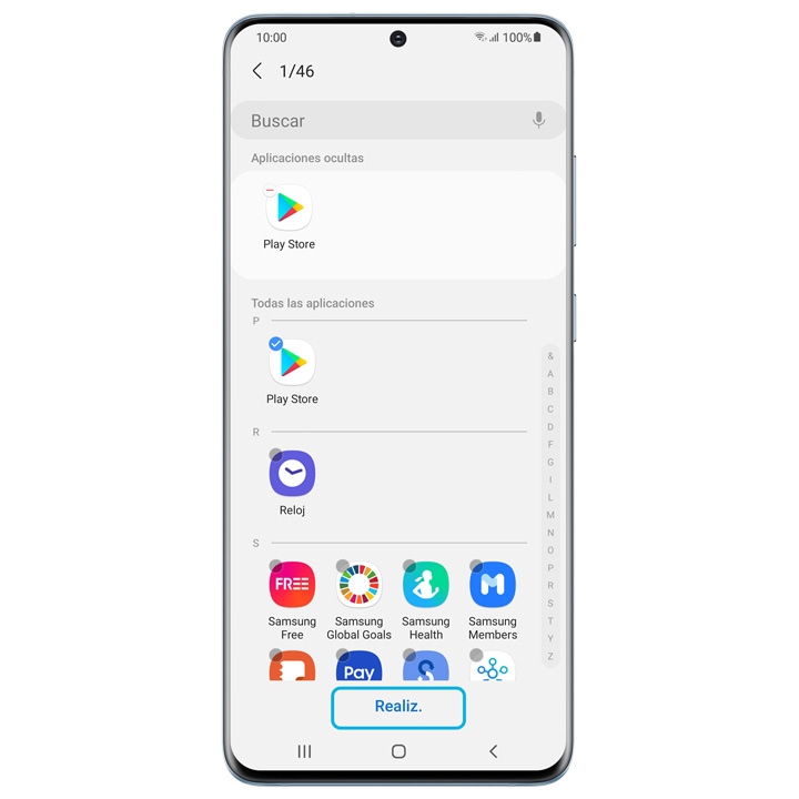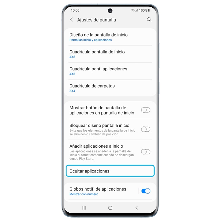 Cualquier aplicación oculta aparecerá en la pantalla de tus aplicaciónes.