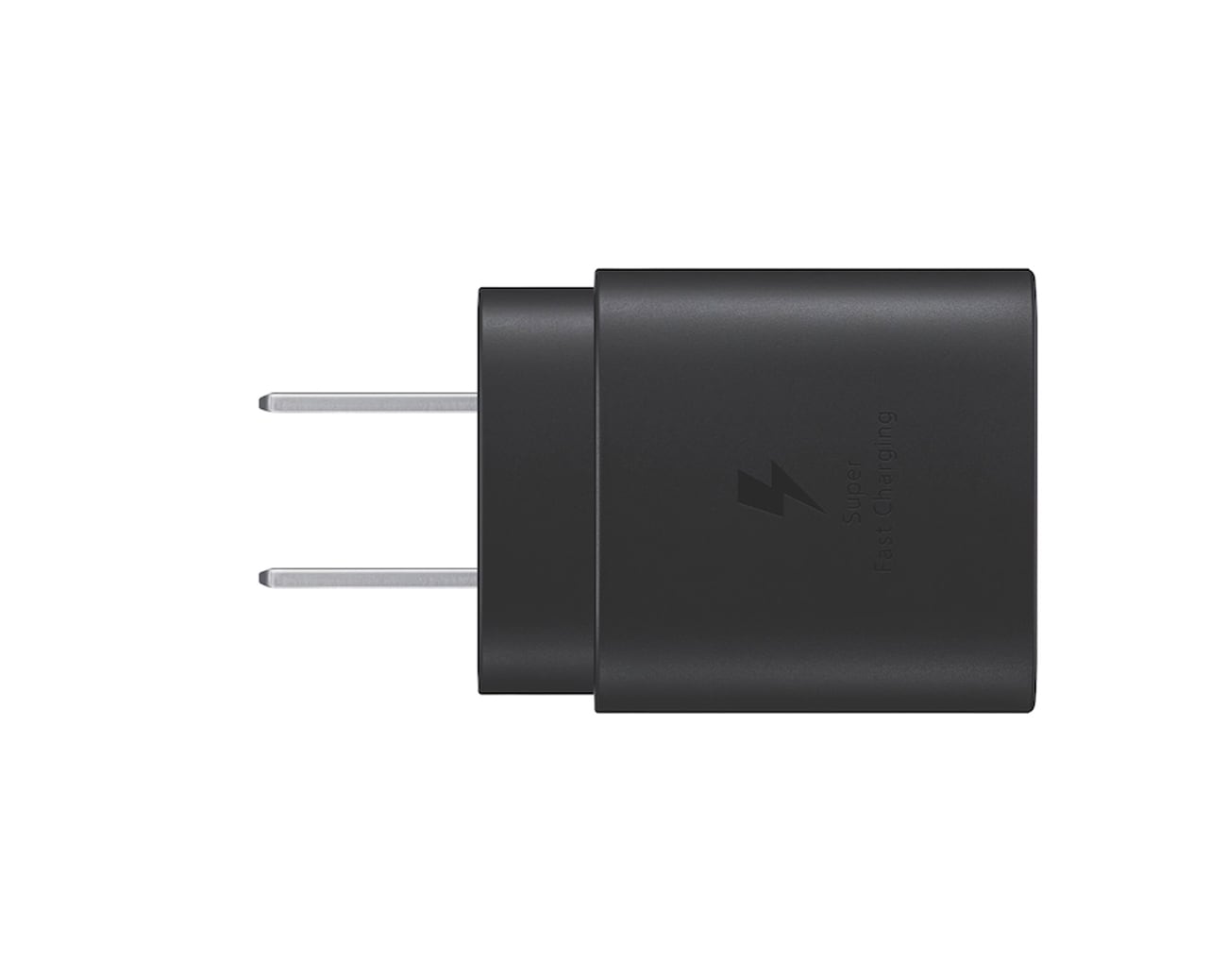 Brinda a tus dispositivos el poderoso soporte de carga que se merecen. El cargador de pared para carga súper rápida (25 W) proporciona una carga súper rápida de hasta 25 W para dispositivos compatibles. Utiliza el cargador de pared con un cable de carga oficial Samsung de tipo C a tipo C para obtener resultados óptimos.