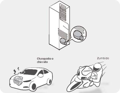 Durante la primera operación del refrigerador, el compresor o el ventilador gira a alta velocidad para bajar rápidamente la temperatura en el refrigerador y aparece un ruido relativamente fuerte. (Por ejemplo, cuando el automóvil está funcionando a alta velocidad, el ruido del motor es fuerte). |