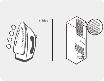 Es un ruido que se genera cuando la escarcha es descongelada por el calentador interno. (Por ejemplo, el ruido del goteo de agua fría en cacerolas calientes). |