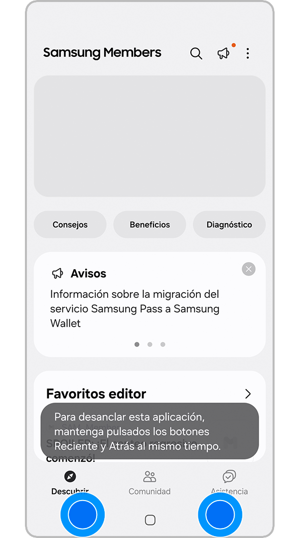 Si tienes dificultades con tu dispositivo móvil, tableta o wearables de Samsung, puedes enviarnos una pregunta en la aplicación Samsung Members.