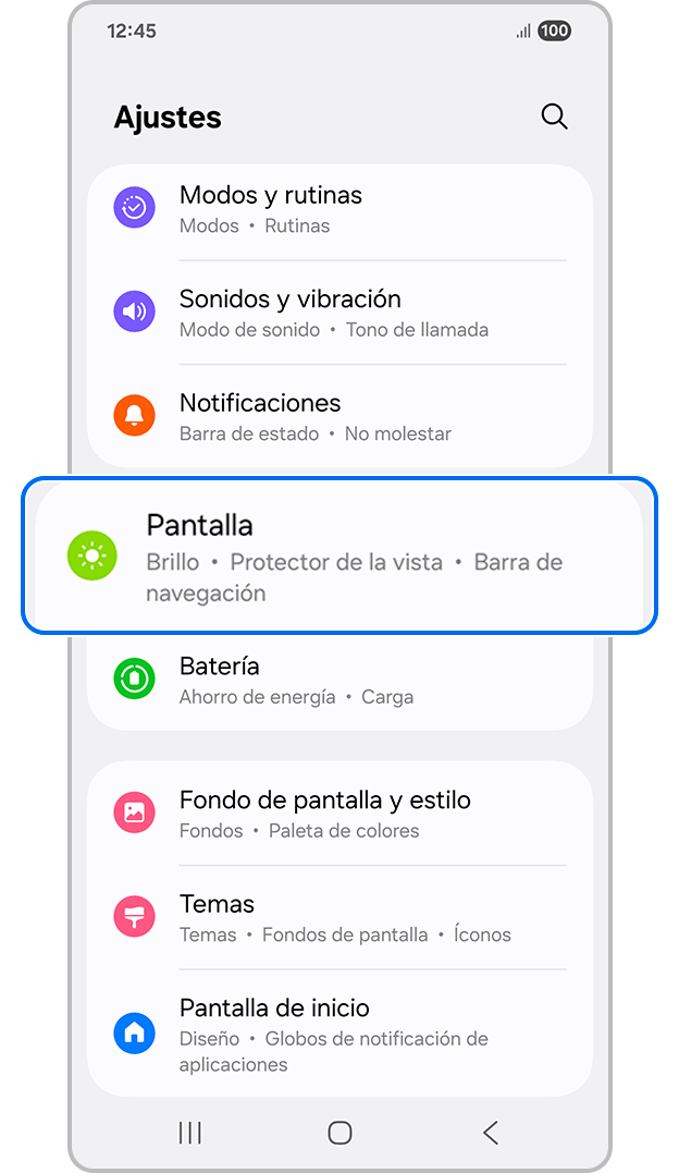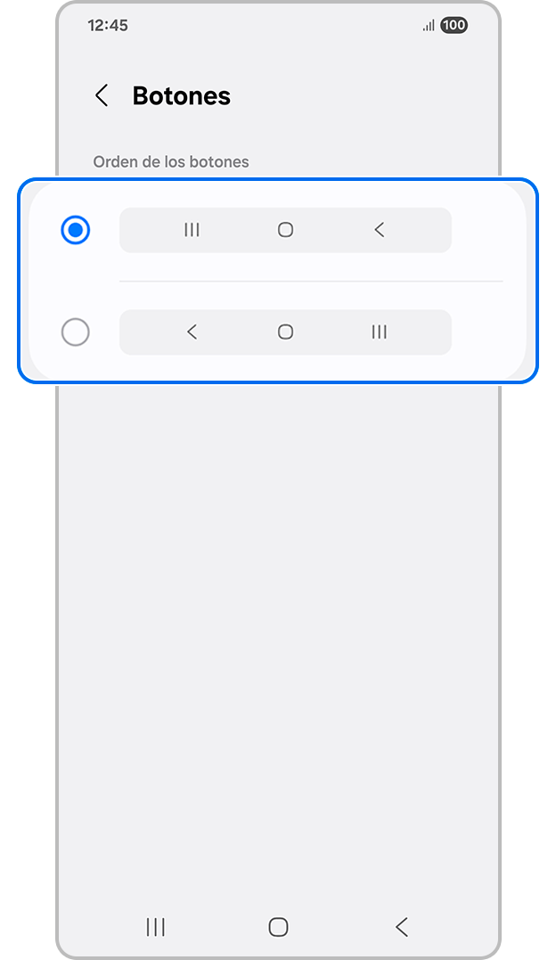La barra de navegación es el menú que aparece en la parte inferior de la pantalla y es la base para navegar por el dispositivo. Sin embargo, su diseño no es fijo: puedes personalizar el diseño y el orden de los botones Recientes, Inicio y Atrás a tu preferencia.