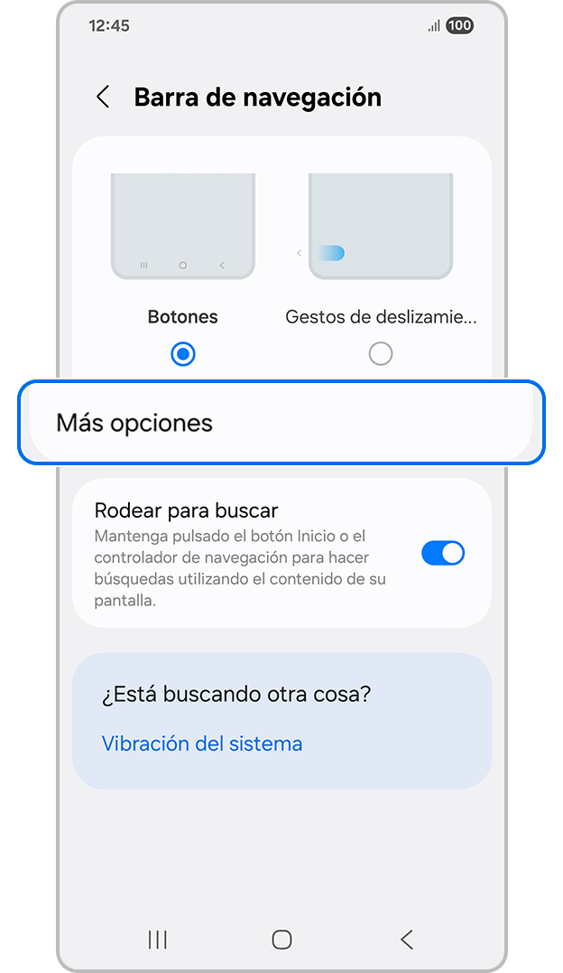 - Si no deseas usar los botones, también puedes activar los Gestos de deslizamiento para ocultar los botones de navegación.