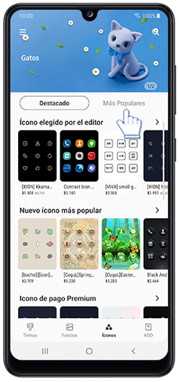 Mantén pulsado sobre la pantalla de inicio y selecciona Temas, luego toca sobre Iconos