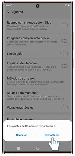 Galaxy Note20 Ultra - ¿Cómo reiniciar la configuración de la cámara?