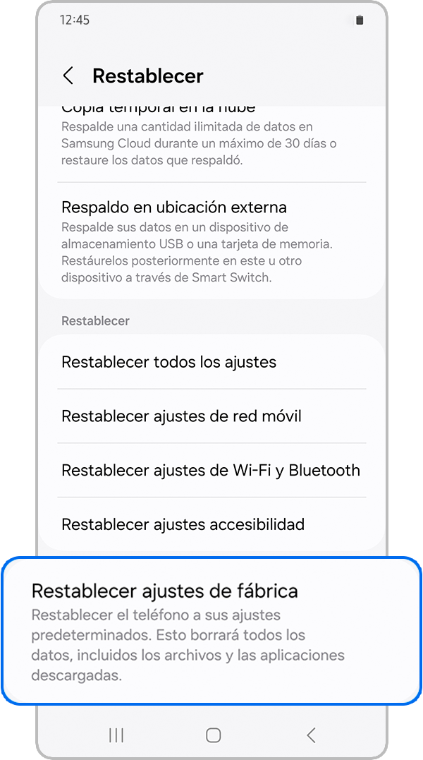 Antes de realizar un restablecimiento de fábrica, asegúrate de hacer una copia de seguridad de tus datos personales, para no perderlos todos.