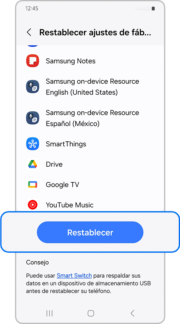 - Si el problema persiste: Es posible que las aplicaciones descargadas no sean la causa del problema. Es posible que debas restablecer el teléfono a configuración de fábrica.