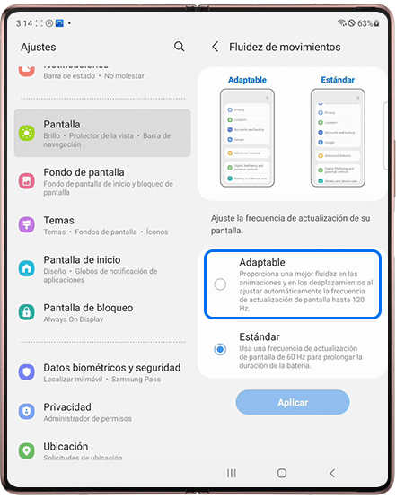 Saca el máximo provecho a los ajustes avanzados de la pantalla del Galaxy Z Fold3