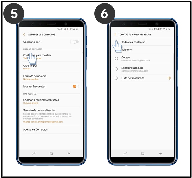 ¿Cómo configurar los contactos para mostrar en tu Galaxy A7 2018?