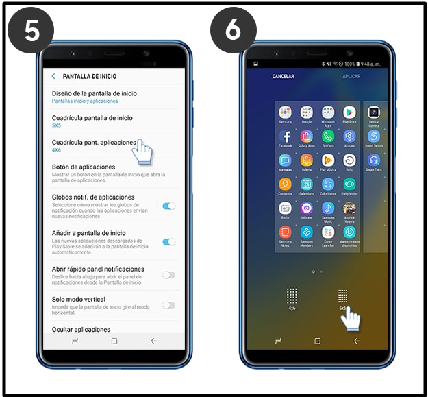 ¡Listo! Así podrás añadir más espacios a la pantalla de aplicaciones o quitarlos.