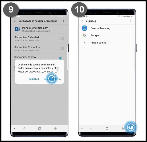 ¿Cómo eliminar una cuenta de correo en tu Note9?