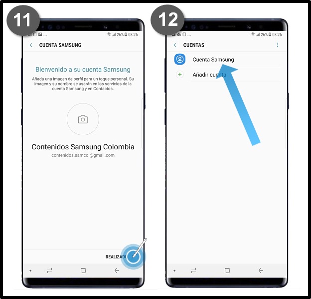 ¡Listo! Se ha registrado con éxito la cuenta Samsung.