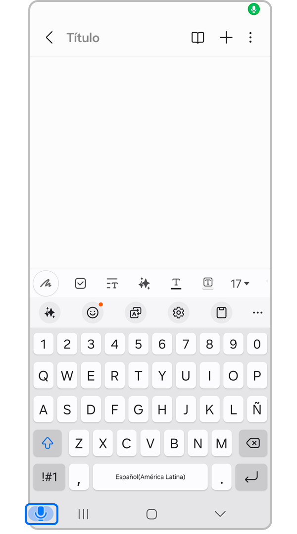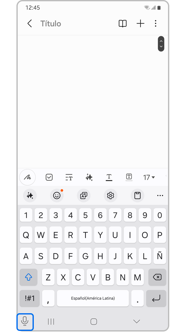 El teclado Samsung te permite ingresar textos largos por voz. Sigue los pasos a continuación: